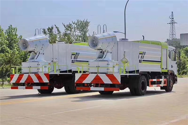 罐體容積10方,噴霧機最大射程可達80米,可選裝30-80米噴霧機,噴霧流量1m3/h(節水可調),水平旋轉360度可調,俯仰角度可調為-10°-45°,覆蓋面廣,水平旋轉180度,控制范圍大;霧粒為30-200微米,流量可根據客戶要求調節;可實現遠程遙控。灑水寬度可達14米,高壓水槍垂直射程近30米,雙向側噴寬度20余米。
