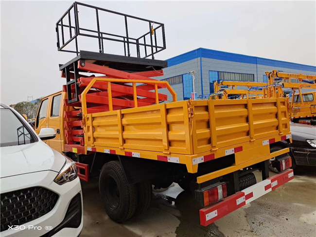 吊藍額定載荷小于等于500公斤,平臺尺寸:1000×1900×955,工作壓力14MPa。10米升降平臺車標配兩個垂直液壓支腿、帶貨箱,可改裝四支腿,12米升降平臺車必須是四條支腿。