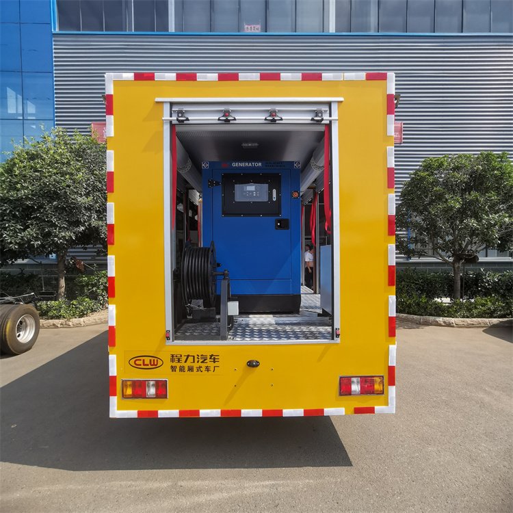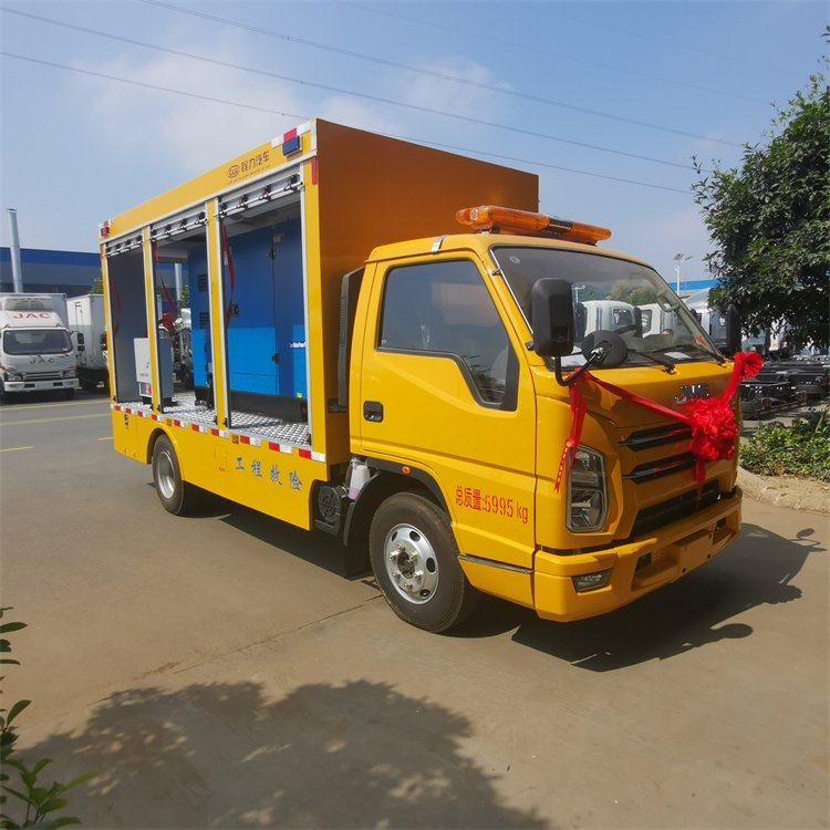 江鈴救險車主要配置:專用裝置為發電機組,空壓機,電焊機以及應急搶險搶修時必備的光源,氣源,電源設備等工具。主要用于搶險救災中的應急電力支援,排除積水和提供專用救險工具等。