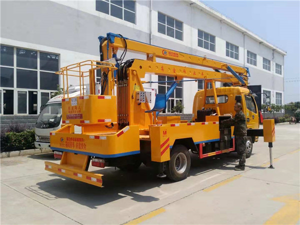 車(chē)輛配制雙向液壓鎖、雙向帶鎖平衡閥、液流閥、液壓油缸等主要部件均采用國(guó)內(nèi)知名品牌,換向平穩(wěn),操作靈活方便;支腿與工作臂互鎖,安全可靠,防止誤操作;H型支腿,跨距大、穩(wěn)定性好,支腿既可獨(dú)立伸縮、又可聯(lián)動(dòng),后支腿裝有支腿報(bào)閃燈,用于作業(yè)時(shí)支腿示廓、發(fā)出光報(bào)警信號(hào)。