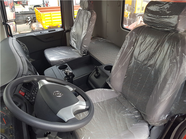 玉柴 270 馬力發動機,東風 T5 駕駛室,帶氣囊座椅、遙控中控(一體式)、四鎖合一,帶行駛記錄儀,2150+4400+1350mm 軸距,陜齒 9 檔帶高低檔變速箱,帶同步器、取力器,前橋5.5 噸后橋11.5噸,“雙卡加強型”平衡懸架, 300mm直通三層局部四層車架,帶連接板,11.00R20 鋼絲胎,原廠空調;