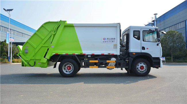 采用機、電、液聯(lián)合自動控制系統(tǒng),通過車廂、填裝器、推鏟等專用裝置,實現(xiàn)垃圾裝入、壓碎或壓扁、強力裝填,最后將垃圾壓實擠入車廂,運到目的地進行自動推動卸載。垃圾收集方式簡便、高效、具有反復(fù)壓縮及蠕動壓縮等功能,壓縮比高,裝載質(zhì)量大,作業(yè)自動化,動力性、環(huán)保性好,整車?yán)眯矢撸瑝嚎s垃圾車車整車為全密封型,自行壓縮、自行傾倒、壓縮過程中的污水全部進入污水廂,較為徹底的解決了壓縮車運輸過程中的二次污染的問題。