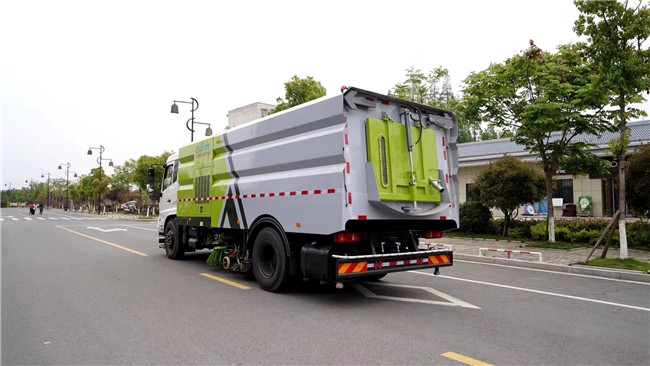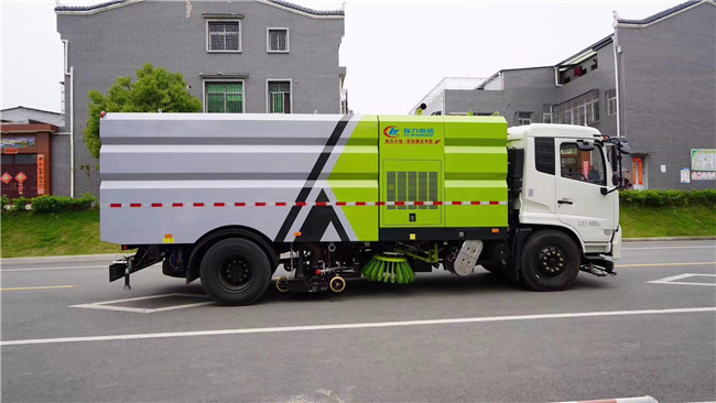 國六東風天錦210馬力高端洗掃車上配有高壓水泵、溢流閥、卸荷閥、氣動離合器等原裝進口件。主副發動機、電氣控制元件采用引起技術生產或國外獨資、合資國內生產件。